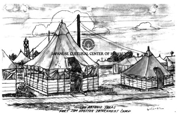 George Hoshida. "Fort Sam Houston Internment Camp," San Antonio, Texas, June 1942. JCCH/Patsy Saiki Archival Collection.