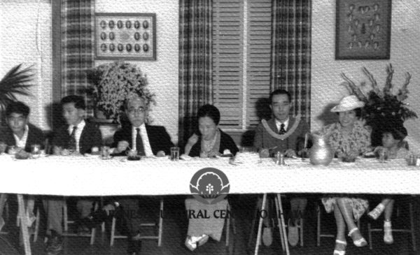 The Motokazu Mori Family, Honolulu, Oahu Island. L-R: Daughter Pearl (2nd); son Victor (3rd); Dr. Iga Mori, Motokazu's father (4th); son Ramsay (5th); and Dr. Motokazu Mori (6th). JCCH/Victor Mori Archival Collection.