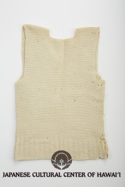 Hideko Ozaki. Beige vest, knitted for husband, internee Otokichi Ozaki. JCCH/Otokichi Ozaki Archival Collection.