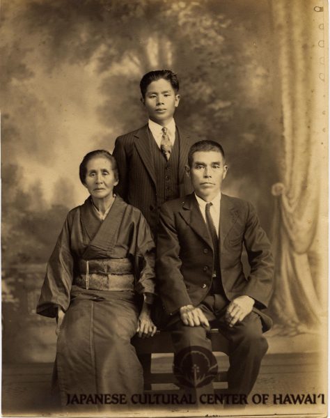 Otokichi Ozaki with mother and father, Shobu and Tomoya Ozaki. JCCH/Otokichi Ozaki Archival Collection.