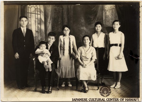 Zenji and Kiku Takahashi and family. Daughter Haruko is at center with glasses. JCCH/Konko Mission of Wahiawa Collection.
