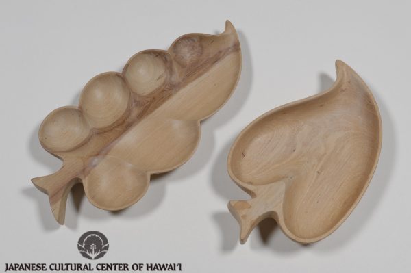 Two small wooden trays, made in the Jerome Concentration Camp by Yukuma Hayashi. JCCH/Yukuma Hayashi Collection.