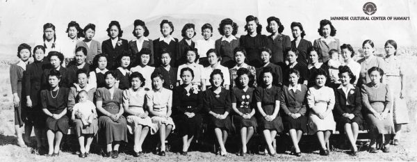 Group of women at a War Relocation Authority camp. Kiyome Iwashita is in the last row, 5th from left. JCCH/Iwashita Family Collection.