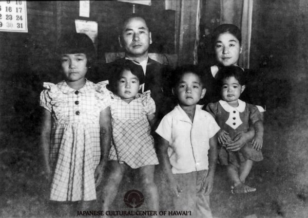 Kubota family. 1st Row (L-R): Tatsuko, Michiko, Daido, Toyomi. 2nd Row: Ryudo, Tsuyuko. JCCH/David Morishige Collection.
