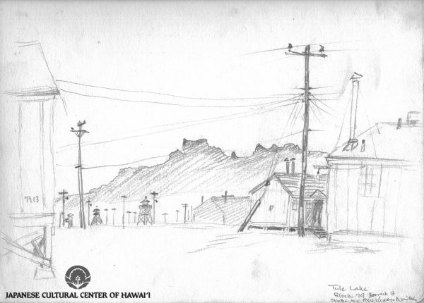 Kyojo Naitoh. "Tule Lake, Block 79, Barrack 13," pencil. JCCH/Gladys Naitoh Archival Collection.