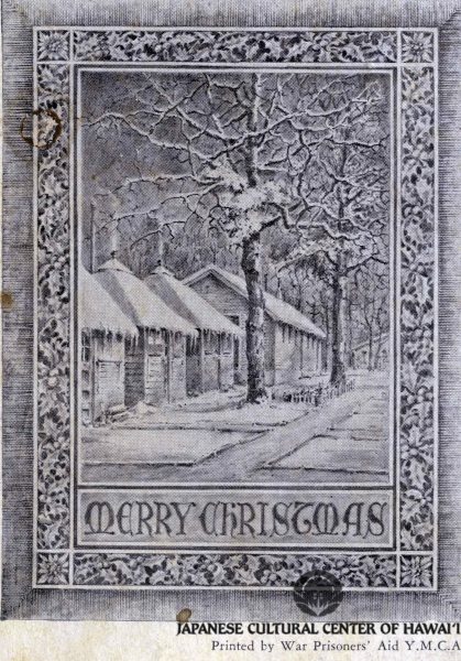 Kyojo Naitoh. "Merry Christmas," printed postcard, Camp Livingston Internment Camp, Louisiana, December 1942. JCCH/Gladys Naitoh Archival Collection.