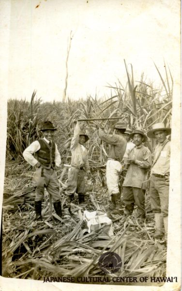 Yakichi Watanabe (left), cane field foreman or luna. Hawaii Island, early 1900s. JCCH/Sadako Alison Yamanaka Collection.